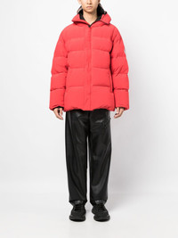 padded animal motif-hoodie jacket Highlights - Poppy red - Classic hood - Padded design - Long sleeves - Concealed front zip fastening - Logo patch at the sleeve - Two side inset pockets - Straight hem Imported Composition Polyester 70%, Nylon 30% SIZE & FIT Model measurements Height 6 ft 2 in(1.87 m) Bust/Chest 31.49 in(80 cm) Hips 37.79 in(96 cm) Waist 27.95 in(71 cm) FittingInformation Designed for an oversized fit, offering additional room throughout Made from a padded non-stretch fabric, giving it no natural elasticity This piece fits true to size – take your usual size Washing instructions Hand Wash