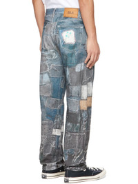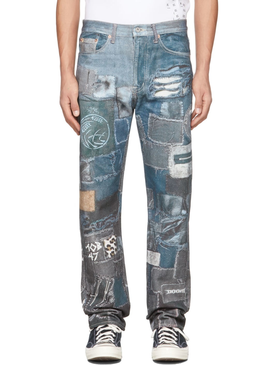 Straight-leg non-stretch cotton and silk-blend denim jeans featuring graphic pattern printed in tones of blue, grey, and white. · Mid-rise · Five-pocket styling · Zip-fly · Rose gold-tone hardware This item is part of a limited run of 266. Supplier color: Blue 55% cotton, 45% silk.
