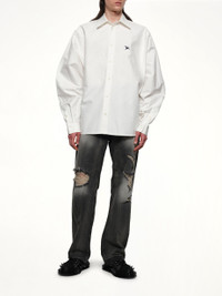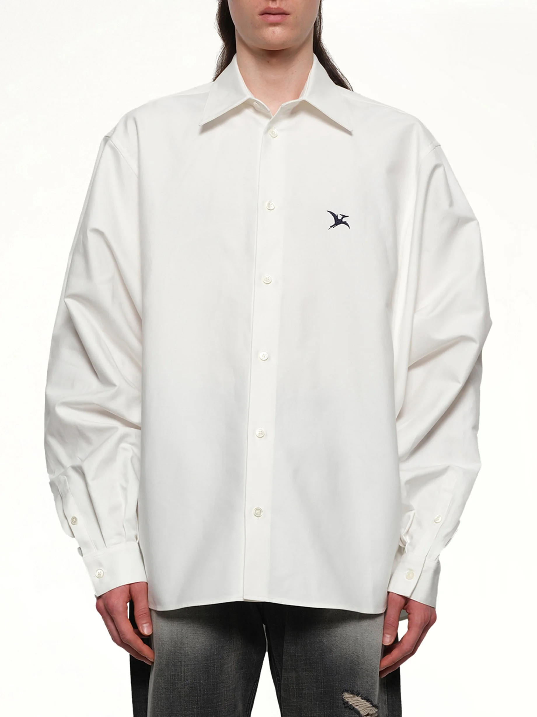 Doublet's Pteranodon Embroidered Shirt in White is a unique blend of contemporary style and artistic embroidery. This shirt features a striking Pteranodon design that adds a touch of whimsy to any outfit. - Composition: Cotton 100% - Color: White - Embroidered Pteranodon design - Button-up front closure - Classic collar - Long sleeves with buttoned cuffs - Relaxed fit - Made in: nan Model is 187 cm and wears size M SKU: 25AW57SH165 WH