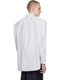 Cotton oxford cloth shirt. Stripes throughout. · Spread collar · Button closure · Graphic embroidered at chest · Patch pocket · Shirttail hem · Structured shoulders · Single-button barrel cuffs · Box pleat at back yoke This item is part of a limited run of 105. Supplier color: White/Black