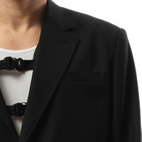 Expertly crafted for a polished look, the Tailored Jacket with Trail Vest in Black is a versatile addition to any wardrobe. With its sleek design and tailored fit, this jacket offers both style and comfort. The included trail vest adds an extra layer of warmth and functionality, making this jacket perfect for any occasion. - Composition: 100% Wool - Long sleeves - Front button closure - Buckles on the front - Made in Japan Model is 192 cm and wears size M SKU: 25SS11JK69