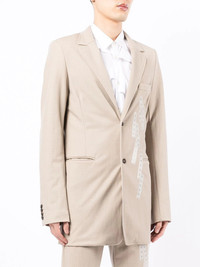 tape-detail single-breasted blazer Doublet injects this classic blazer with its rebellious attitude. Cut to a timeless single-breasted silhouette, it is adorned with tape detailing to the front for a distinct look. Imported Composition Body: Nylon 75%, Cotton 22%, Polyurethane 3% SIZE & FIT Model measurements Height 6 ft 0 in(1.84 m) Bust/Chest 35.43 in(90 cm) Hips 35.82 in(91 cm) Waist 28.74 in(73 cm) Measurement CHEST 20.07 in(51 cm) Shoulder Width 16.14 in(41 cm) SLEEVE LENGTH 27.95 in(71 cm) Washing instructions Hand Wash