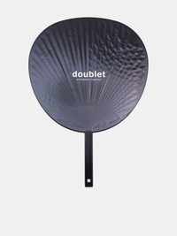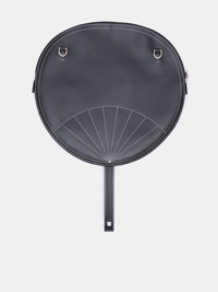 DOUBLET x BETA POST bag in black, fan case design, leather construction, printed graphics & logo, contrast topstitching, detachable shoulder strap, top zip closure, two interior pockets, branded fan included. Made in Indonesia 100% Cow Leather One Size