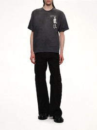 Doublet's Waste-Reducing Algorithm T-Shirt in Black is a stylish and innovative piece that combines fashion with sustainability. Designed to minimize waste, this t-shirt is a testament to modern eco-conscious clothing. - Composition: Cotton 100% - Color: Black - Features a unique waste-reducing design - Regular fit for everyday comfort - Short sleeves and a classic crew neck - Part of Doublet's sustainable fashion line - Made in: nan Model is 187 cm and wears size M SKU: 25AW33CS396 BK