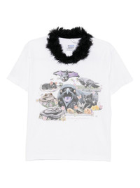 faux-fur collar zipped T-shirt Highlights - White - Graphic print to the front - Crew neck - Short sleeves - Straight hem Imported Composition Cotton 100% Washing instructions Hand Wash