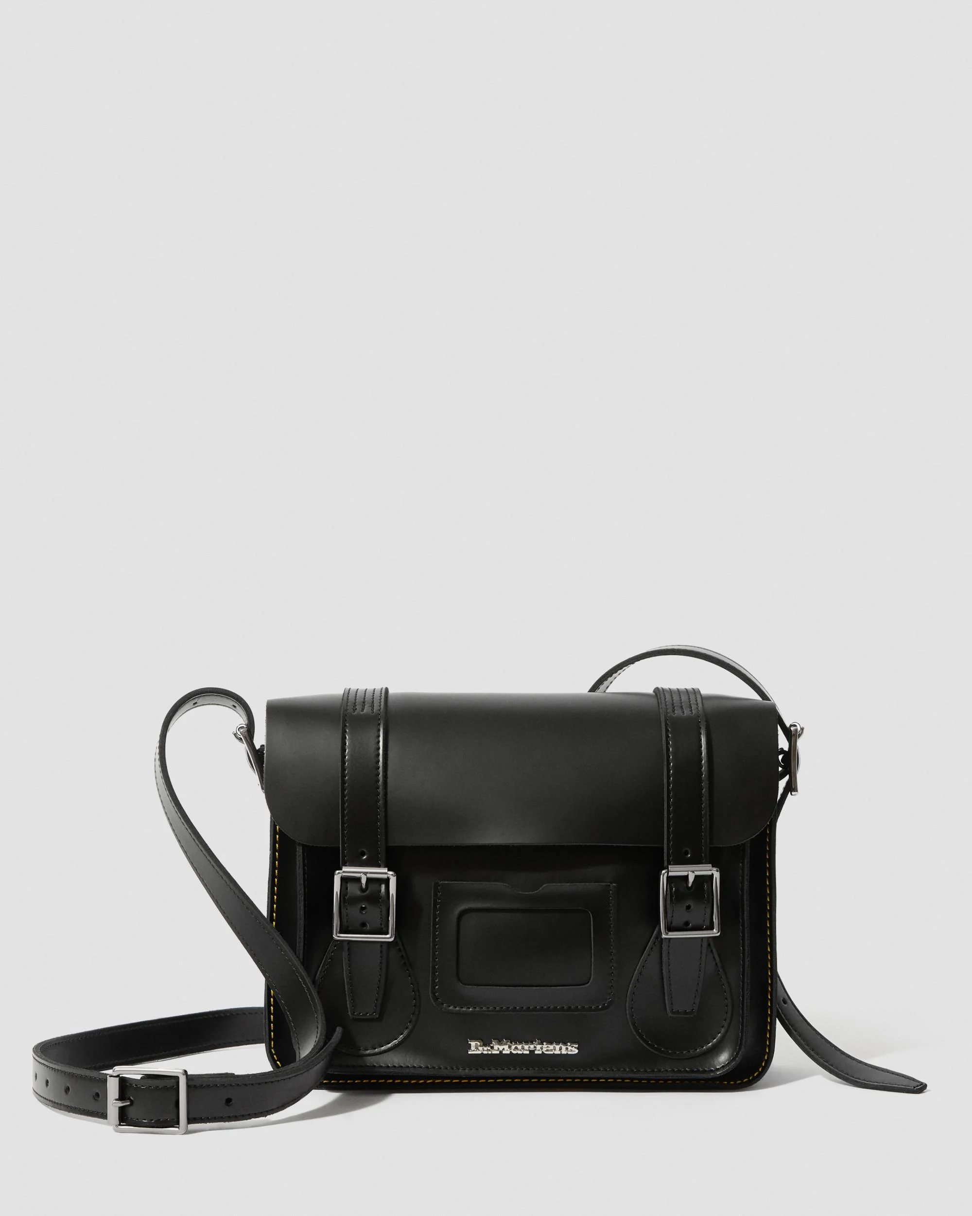 In two hardwearing, premium leathers — Kiev and Smooth — this classic satchel features heavy-duty metal hardware, buckle fastening and tons of Docs DNA, including heavy-duty, durable puritan stitch detail. - Oversized closure flap - Classic buckle fastening - Front pocket with traditional name card holder - Removable, adjustable shoulder strap - Dimensions - 11 in. wide, 8 in. tall, 3 in. deep - Shoulder strap: 45" long Material PU-coated version of our classic smooth leather. Product code AB097001