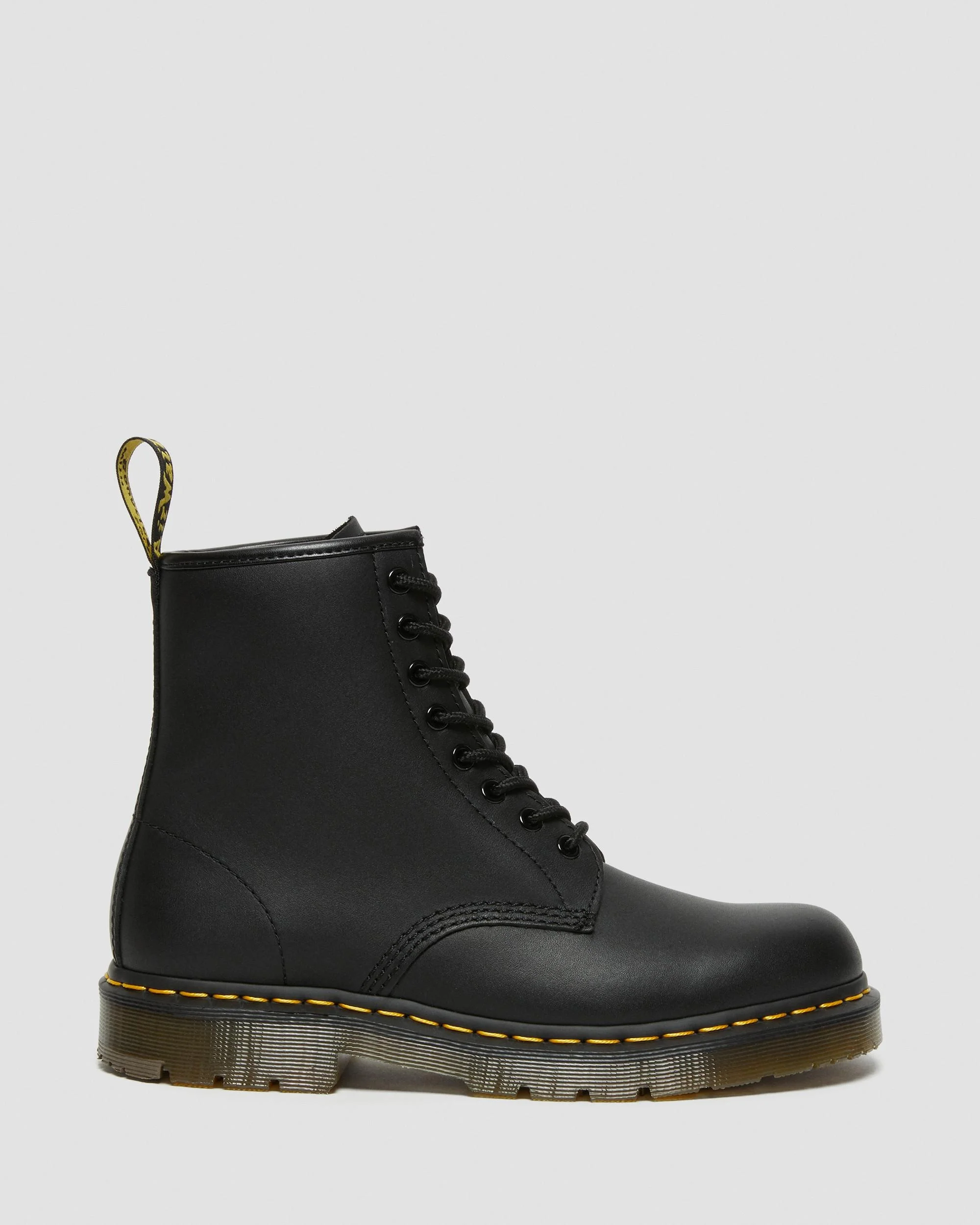 For tough Mondays and easy Sundays. This slip-resistant rework of our Original 1460 boot is designed to keep you bouncing from start to finish. Anti-fatigue. Pro-comfort. The 8-eye boot is breathable, flexible, and fitted with a memory foam SoftWair footbed for extra cushioning. It’s made with splash-resistant leather and a unique Grip-Trax tread that dissipates water for increased traction on slippery surfaces. Unmistakably Doc’s, the boot is signed with grooved sole walls, yellow welt stitching, and a black and yellow heel loop. - Learn more about our Slip Resistant Originals Material This is a coated, full grain leather. Construction Goodyear Welted - the upper and sole are heat-sealed and sewn together, providing more comfort and durability for years to come. Product code 24382001