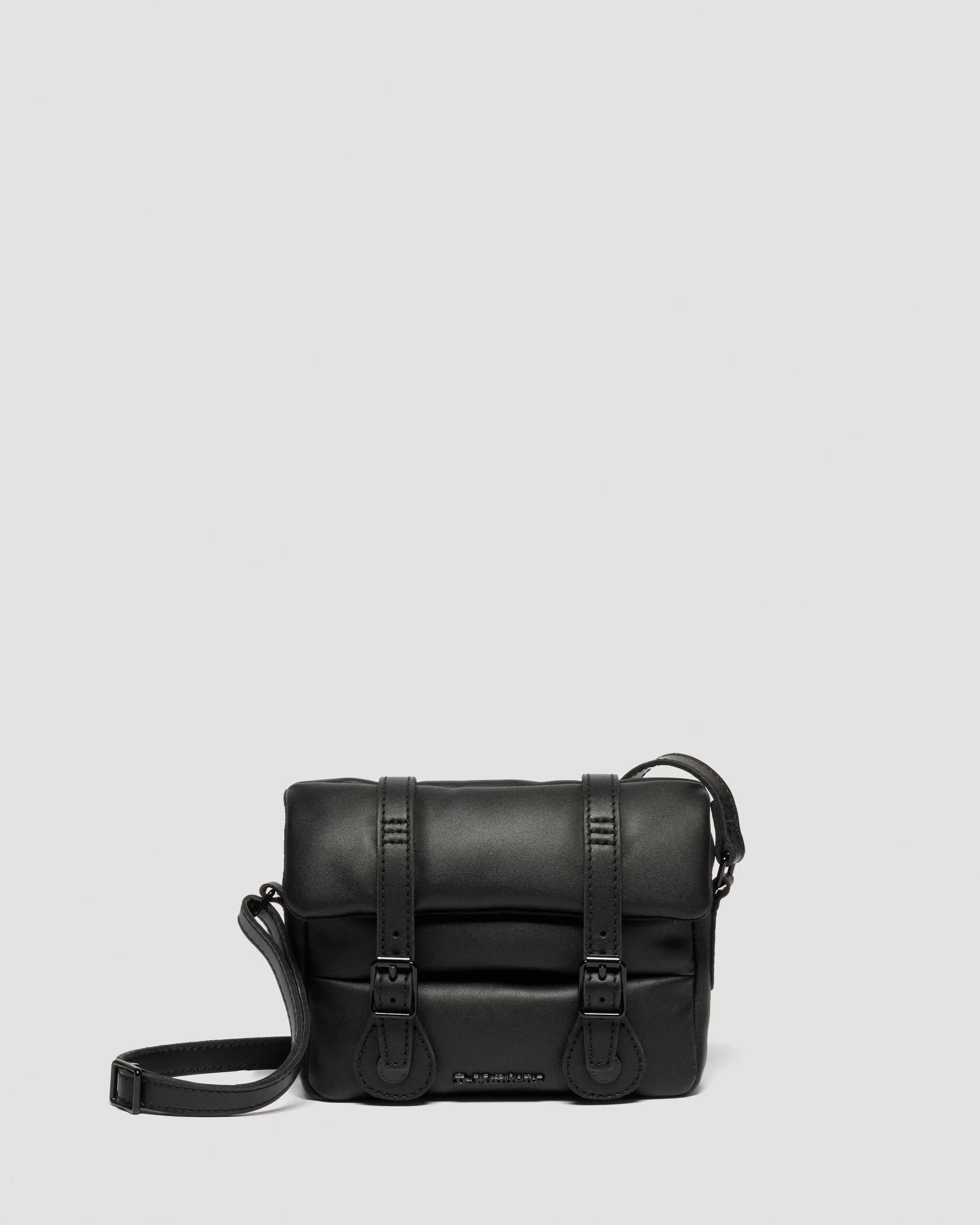 Blown out construction. The 7” Padded Satchel takes exaggeration as its muse. Think all the functionality and durability of a classic DM’s satchel but playfully modified. Using a blend of smooth full-grain Sendal leather and hard-wearing Kiev leather, the silhouette features black hardware, a twin magnetic buckle closure and an adjustable leather shoulder strap. Material Sendal is a high quality, naturally soft leather that’s smooth and hardwearing. Kiev leather is a modified version of our classic Smooth leather, with a PU coating, polished surface and slight sheen. Product code 41364001