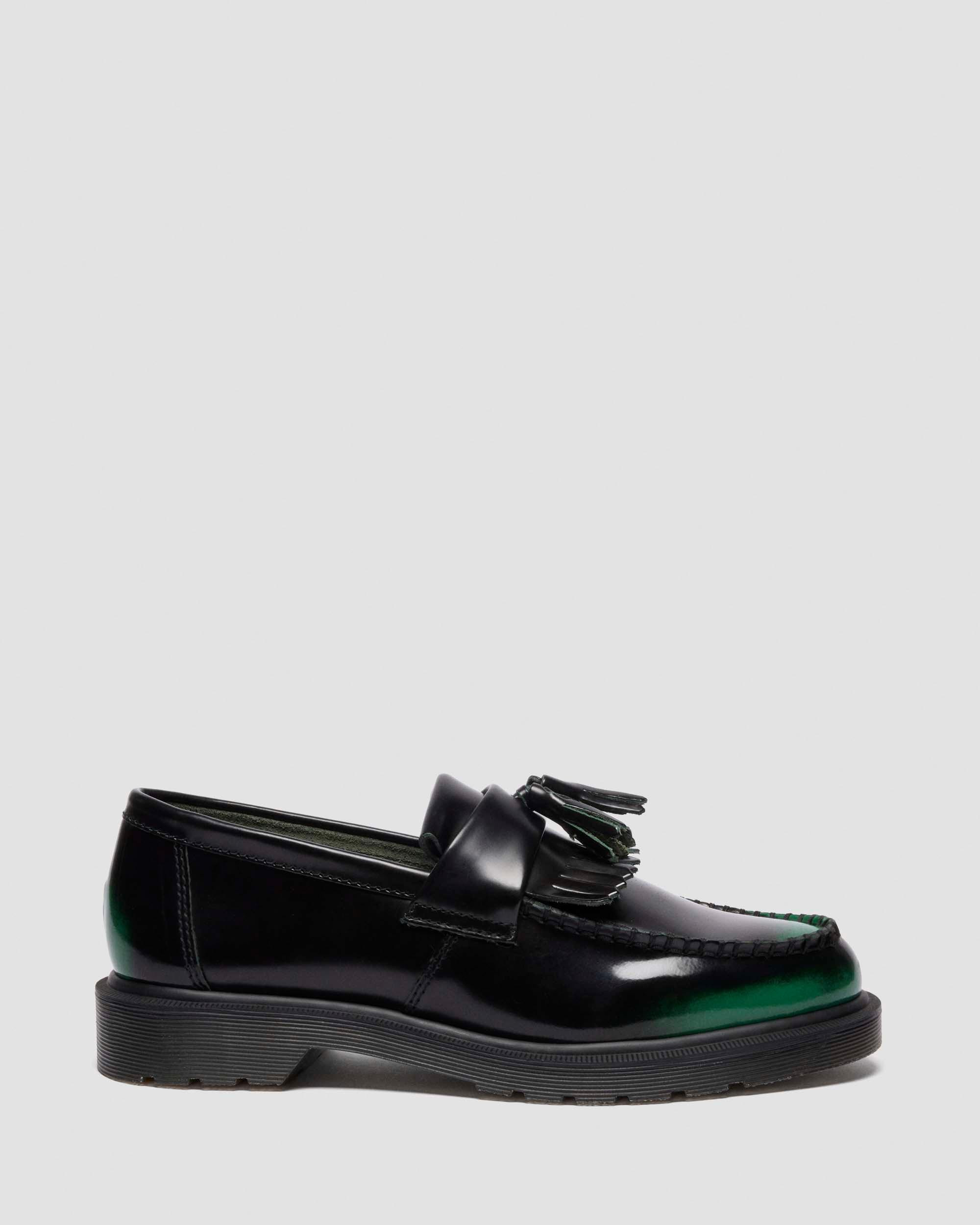 A blank canvas for your story. The Adrian Tassel loafer is revived in Arcadia leather which reveals more color with every wear. Its rub-off finish means the black top coat etches away over time to expose a colored underlayer – making each pair unique. A meeting ground of the experimental and traditional, the loafer stays true to classic Adrian detailing, featuring a tassel and apron, a plain welt and a signature DMS sole in trans. Material A high-shine leather with a base dye and contrasting topcoat, which is rubbed off to reveal the underlying color. Construction Goodyear Welted - the upper and sole are heat-sealed and sewn together, providing more comfort and durability for years to come. Product code 14573301