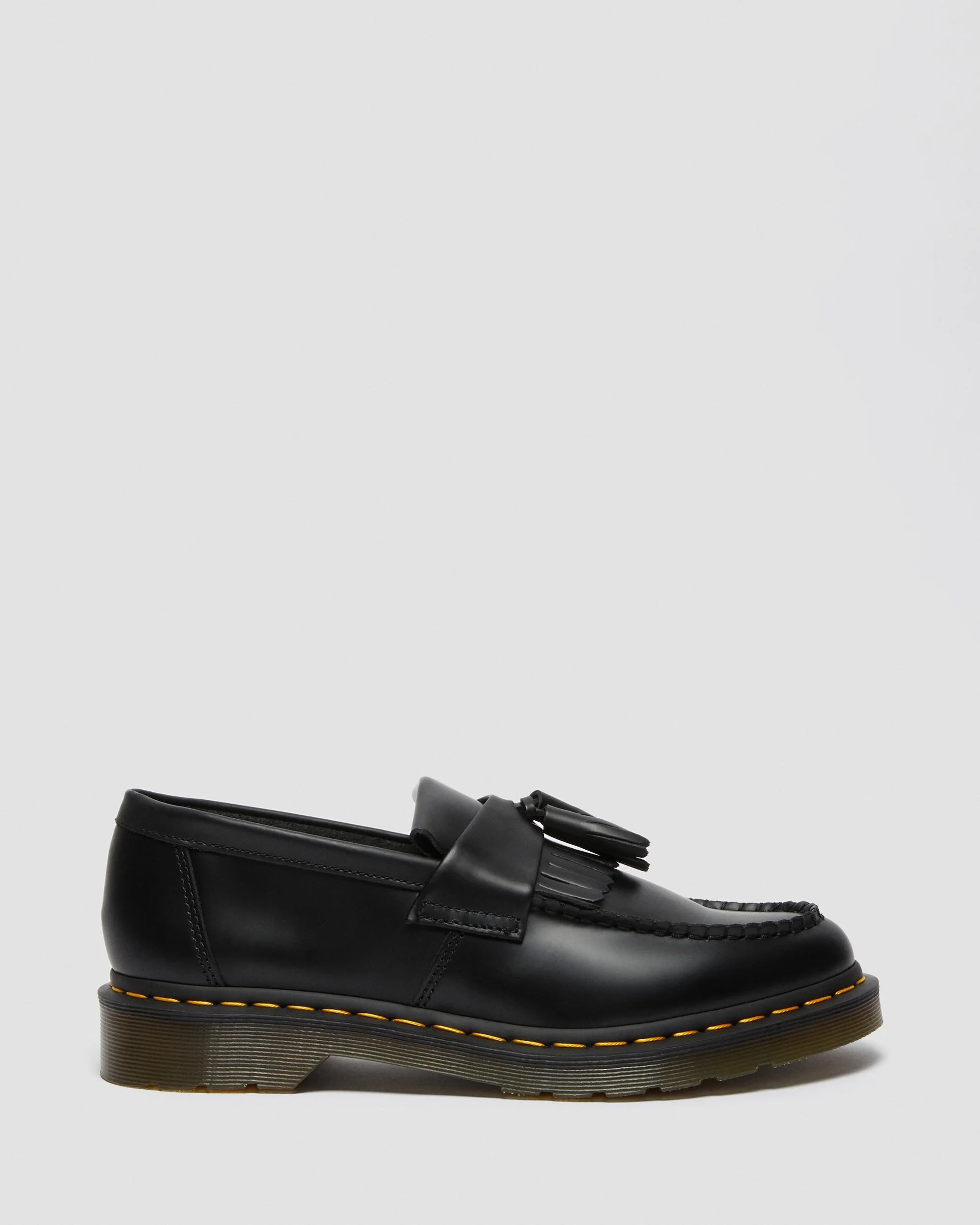 Our subcultural favourite Adrian tassel loafer has been a staple in the DM’s line-up for decades. Built from our classic Smooth leather with a double tassel and kiltie fringe. The loafer is marked with instantly recognisable DM’s signatures: a grooved two-tone outsole and distinctive yellow welt stitching. - The first DM's shoe inspired by subcultures. The Adrian loafer rolled off the production line in the 70s — fusing mod-like smartness with Dr. Martens-level durability - Hardwearing and famously tough, our Smooth leather can be polished to shine or scuffed-up. It's up to you. Clean with a damp cloth and care with Dr. Martens Shoe Polish - Our Goodyear-welted lines are heat-sealed and reinforced with our signature welt stitch Material Smooth - durable and famously stiff to start, this leather can be polished to a dapper shine or artfully scuffed-up depending on your preference.For tips on how to break in your Docs visit our Guide. Care Instructions Wipe away dirt using a damp cloth. Apply a neutral or correct colored wax based shoe polish. Buff with a Dr. Martens Shoe Brush to restore shine as desired. Construction Goodyear Welted - the upper and sole are heat-sealed and sewn together, providing more comfort and durability for years to come. Product code 22209001 Originals Shoes Material Smooth - durable and famously stiff to start, this leather can be polished to a dapper shine or artfully scuffed-up depending on your preference.For tips on how to break in your Docs visit our Guide. Construction Goodyear Welted - the upper and sole are heat-sealed and sewn together, providing more comfort and durability for years to come. Product code 22209001