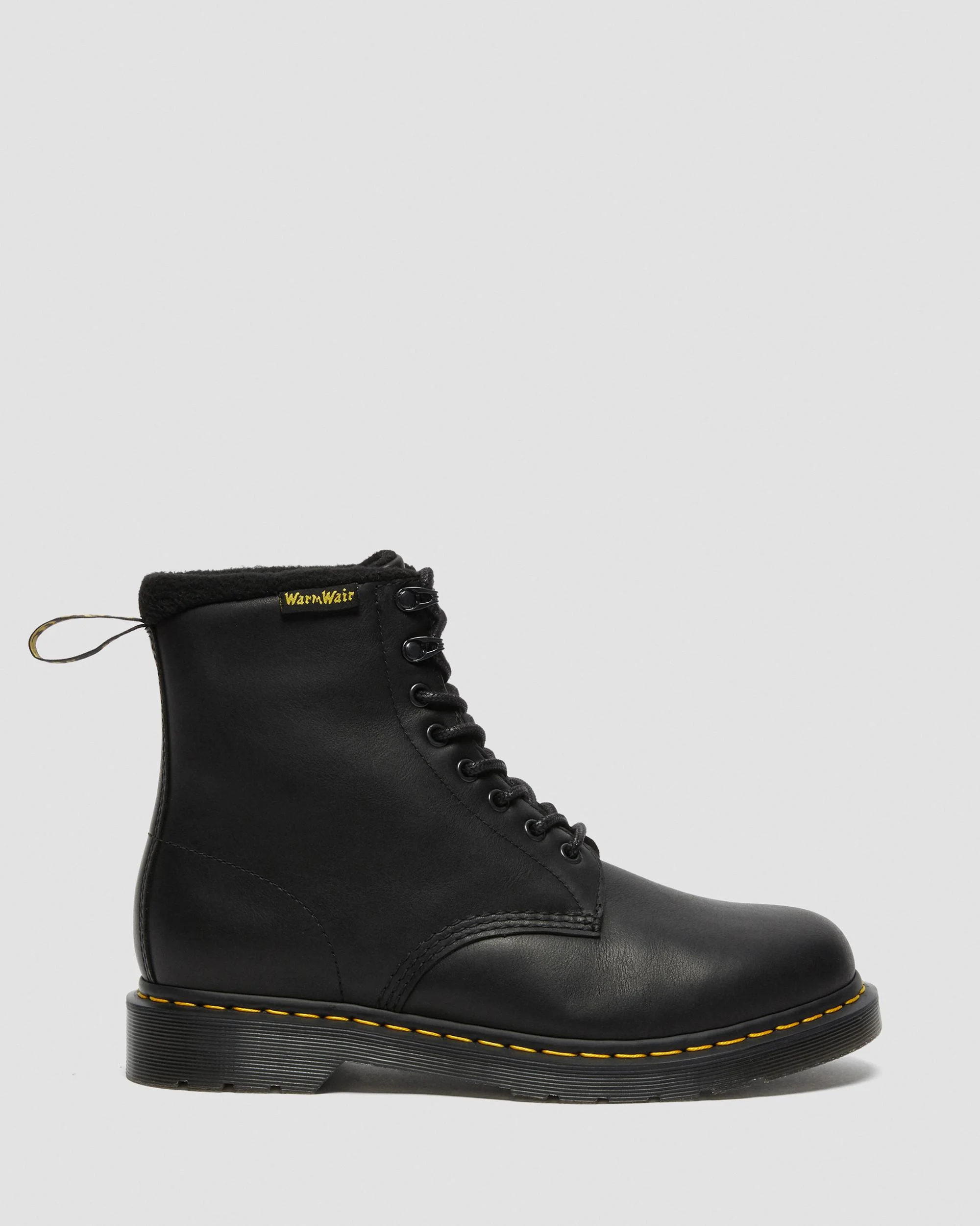 The classic DM's boot. Reimagined to take on winter. These lined boots are crafted from Valor WP, a heavyweight leather with a rugged tumbled finish, and fitted with soft fleece linings and a fleece-lined sock for optimum warmth. Built for comfort, the WarmWair boots have rolled toplines and a sculpted tongue for a snug fit. They're marked with all our signature DNA, and set on a Smoke DMS sole reinforced with yellow welt stitching. - Born on 01.04.60. Named the 1460. Over six decades, our 8-eye work boot has become iconic - Valor WP is supple, water-resistant leather with a slightly tumbled finish - Warm hardwearing and winter-proof: WarmWair is soft insulated lining crafted from carefully selected materials - Our Goodyear-welted lines are heat-sealed at 700°C and reinforced with our signature welt stitch Material Valor WP - A supple, water-resistant leather with a slightly tumbled finish. Construction Goodyear Welted - the upper and sole are heat-sealed and sewn together, providing more comfort and durability for years to come. Product code 27084001