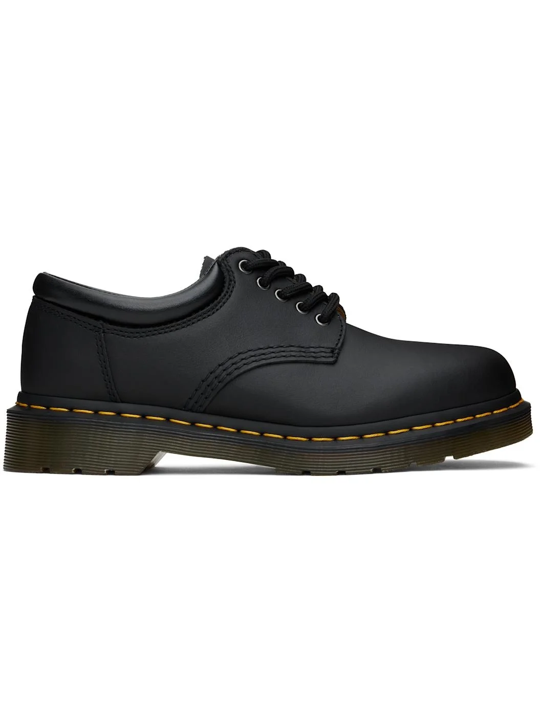 Lightweight nappa leather derbys in black. · Lace-up closure · Padded collar · Buffed leather lining · Yellow topstitching at heat-sealed Goodyear welt · Treaded Air Cushion rubber sole · Heel: H1.25" Supplier color: Black nappa Upper: leather. Sole: rubber. Made in Viet Nam 251399M225028
