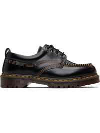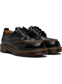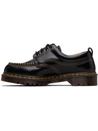 Polished leather derbys. · Blanket stitching at moc toe · Lace-up closure · Padded collar · Pull-loop at heel collar · Buffed leather lining · Yellow stitching at heat-sealed Goodyear welt · Treaded Air Cushion rubber sole · Contrast stitching in brown Supplier color: Black Analine Upper: leather. Sole: rubber. Made in Lao Peoples Republic 261399M225012