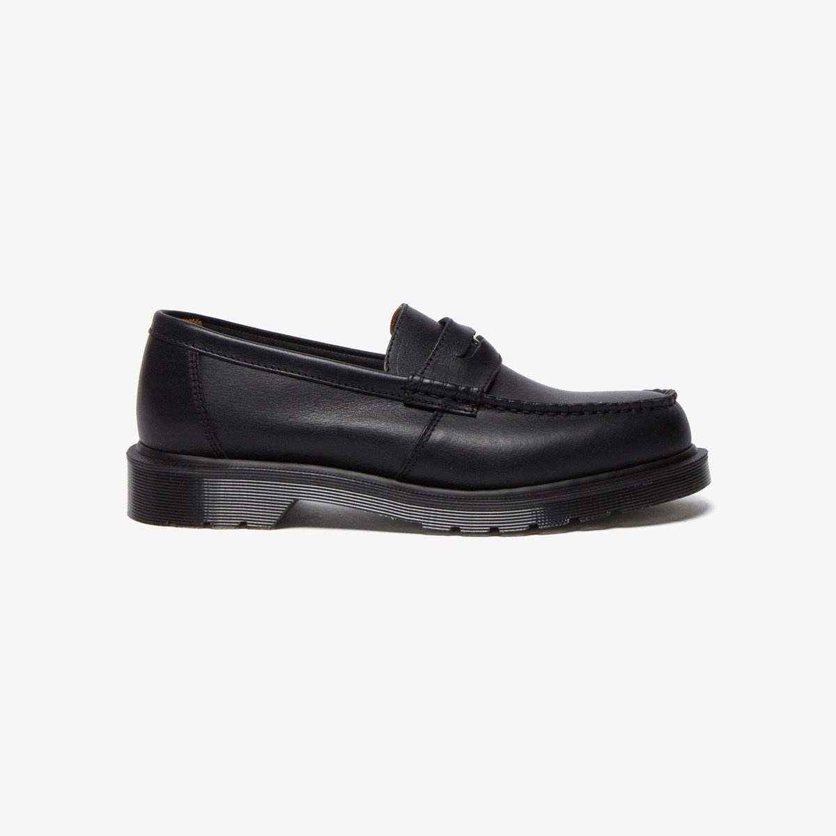 The refined Penton loafer by Dr. Martens provides a sleek, tassel-free alternative to a subcultural classic, the Adrian loafer. Handcrafted with premium Classic Calf leather from Leeds-based tannery C. F. Stead, this version of the Penton loafer is marked with a DM’s branded gold penny and stands on a smoke DMS sole with an understated black welt stitch. - Dr. Martens Penton - Premium Calf leather with natural characteristics - Upper: 100% Leather - Inner: 60% Leather, 40% Textile - Sole: 100% PVC - DMS sole - A two-tone PVC sole marked with signature grooving & unique tread - Goodyear-welted lines are heat-sealed & reinforced with DM's signature welt stitch - Made in England at DM's original Wollaston factory. Article no. 31858001 Gender: UNISEX Color: Black