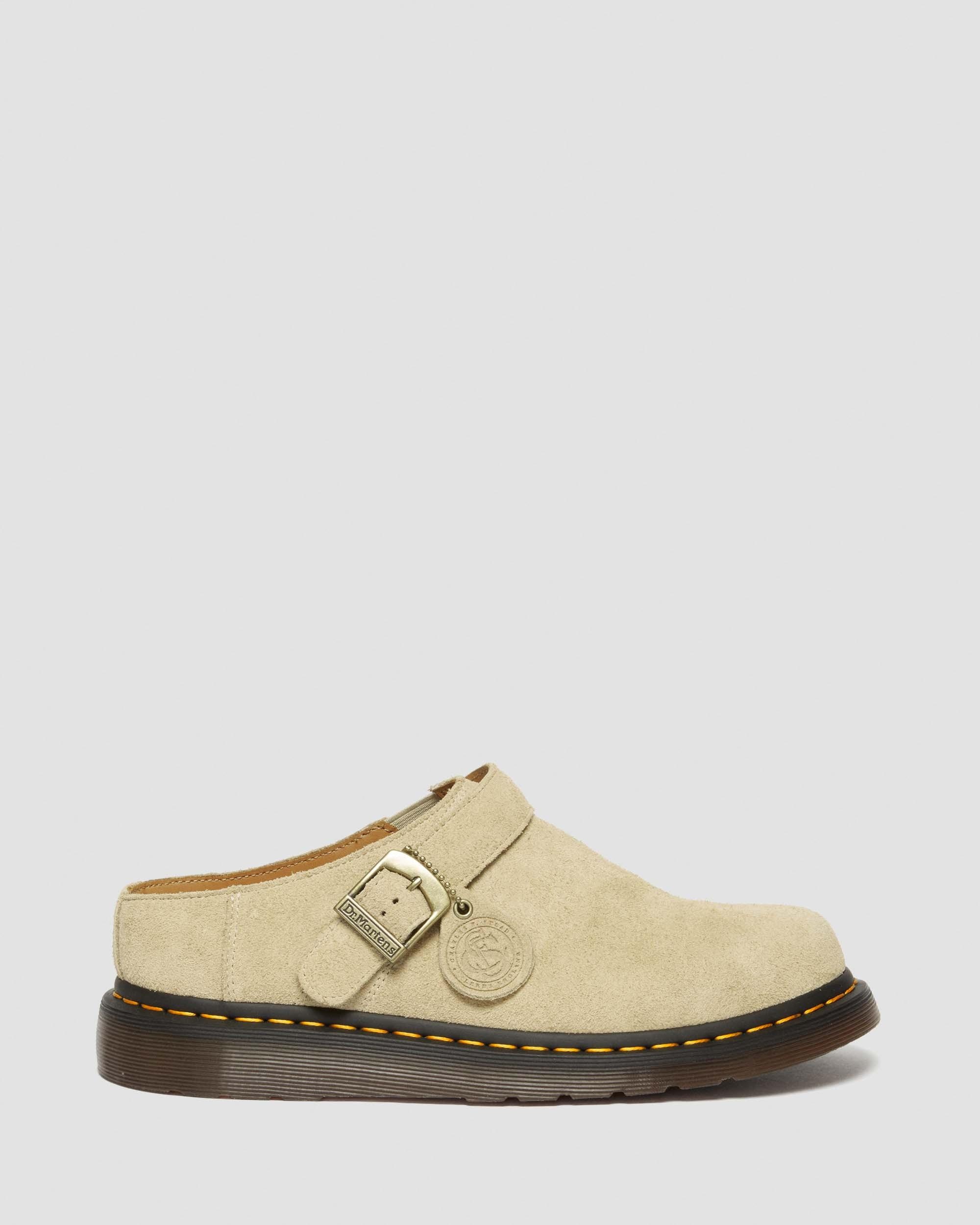 Named after a small village in Northamptonshire, the Isham slip-on returns. This new rework is built from premium Desert Oasis suede from the Leeds-based tannery C. F. Stead. Detailed with adjustable gold hardware. The slip-on silhouette stands on our Shore sole, marked with signature DM’s grooving and our contrast welt stitch. - Desert Oasis Suede is made in England with a pronounced nap for a premium look and feel - Unmistakably DM's. The Shore sole keeps our sandals grounded and instantly recognizable. Marked with our signature grooving and secured with contrast yellow welt stitching. - Construction - Made with a Goodyear-welted lines that are heat-sealed and reinforced with our signature welt stitch - Footbed - Slimmer and a more tapered toe shape Material This classic suede is made in England and features a pronounced nap for a premium look and feel. Construction Goodyear Welted - the upper and sole are heat-sealed and sewn together, providing more comfort and durability for years to come. Product code 31734292