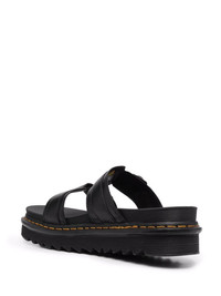 Myles platform sandals Black leather Myles platform sandals from DR. MARTENS featuring slip-on style, decorative buckle detailing, open toe, contrast stitching and platform sole. When buying this unisex item, keep in mind that it is graded in standard men's sizing.. Imported Composition Lining: Fabric 100% Sole: Rubber 100% Outer: Calf Leather 100% SIZE & FIT Measurement HEEL 2.2 in(5.5 cm) Sole height 1.6 in(4 cm)
