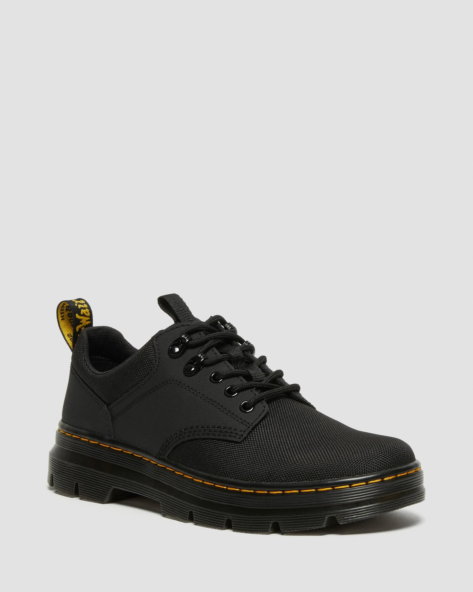 Built for the everyday. Standing on an extra-rugged luggy outsole, these shoes are made from a mix of Extra Tough 50/50 and Ajax leather. Full of Docs DNA, they're fitted with hiker-style laces and finished with yellow stitching and a black and yellow heel loop. - Extra Tough 50/50 is an extra tough, synthetic woven fabric with exceptional strength and elasticity. Made with 50% recycled plastic - Ajax is a PU-coated split leather with a subtle geometric emboss - Core Dr. Martens DNA: grooved edges, an AirWair heel loop and visible stitching - Made with a comfortable, durable cemented construction Material Extra Tough Nylon is a tough, synthetic woven fabric with exceptional strength and elasticity. Construction Cemented - the sole is cemented to the upper, a durable and flexible construction for all day comfort. Product code 27102001