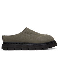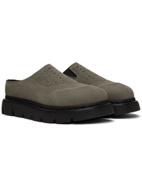 Nubuck slip-on loafers in gray. · Cap toe · Perforations and elasticized gusset at vamp · Faux-suede lining · Heat-sealed Goodyear welt · Textured Air Cushion rubber platform midsole · Treaded rubber sole · Platform: H1.25" Supplier color: Dark grey Upper: leather. Sole: rubber. Made in Viet Nam 252399M231000