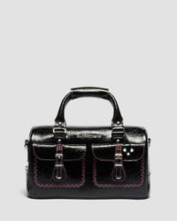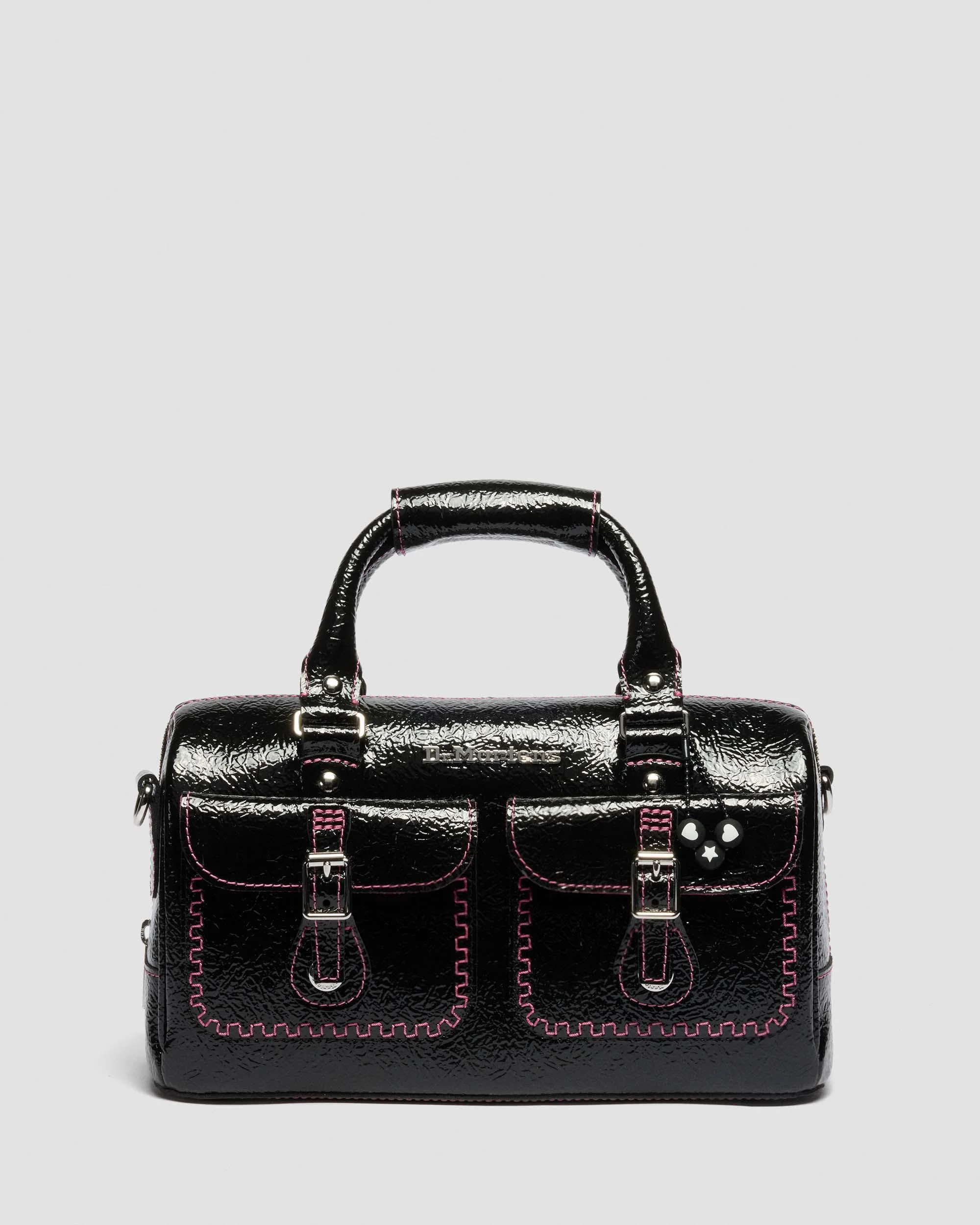 Carry some attitude. Our Top Handle bag brings bold DM’s energy to your everyday. Crafted in black distressed Patent leather and detailed with contrasting pink embroidery. This statement piece keeps you organized with a spacious zipped main compartment and two buckle-fastened external pockets. Dual handles let you grab and go, while a removable crossbody strap gives you hands-free freedom. Silver hardware and classic DM’s accents make sure it stands out. Material Distressed Patent - A PU-Coated leather with a brilliant shine. Product code 42491001