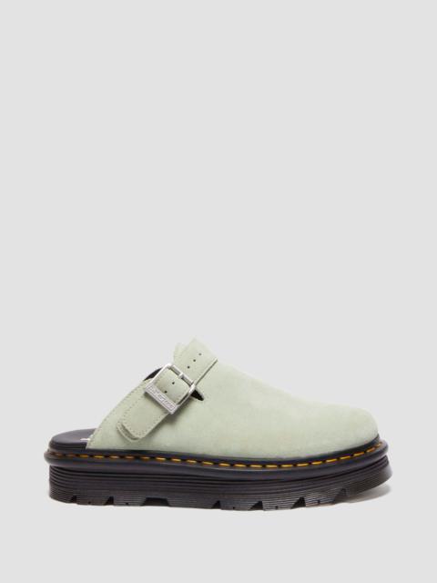 The Zebzag mule is our latest innovation in comfort: built on a hybrid air-cushioned sole that fuses feather-weight EVA with rugged PVC. Crafted from lightweight, versatile suede, they’re designed to be worn however you feel like – in summer or out of the conventional season. The adjustable strap ensures a secure fit, while the welted construction delivers our signature durability. Yellow welt stitching marks the mules as Dr. Martens. - Construction - Made with a Goodyear-welted lines that are heat-sealed and reinforced with our signature welt stitch - Sole Height - Platform height: 1 in; Heel height: 1 1/4 in - Footbed - Wider and a more rounded toe shape Material E.H. Suede - a classic leather with a silky to touch texture. Construction Goodyear Welted - the upper and sole are heat-sealed and sewn together, providing more comfort and durability for years to come. Product code 31937651
