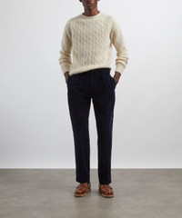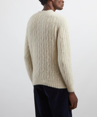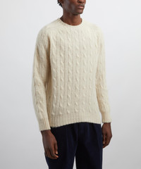 Ecru Brushed Shetland Cable Knit Crew Neck Jumper