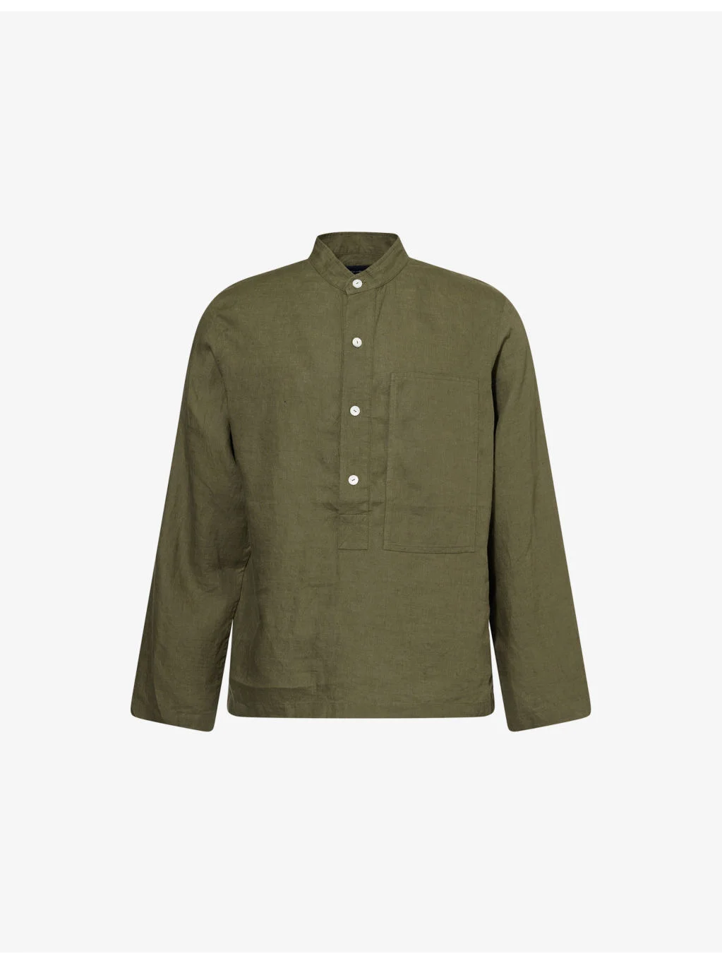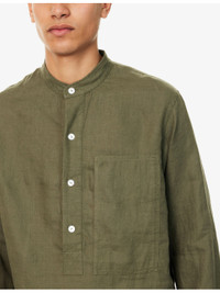 Grandad-Collar Long-Sleeve Linen Shirt