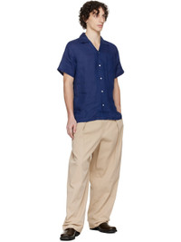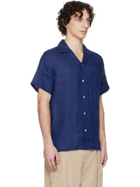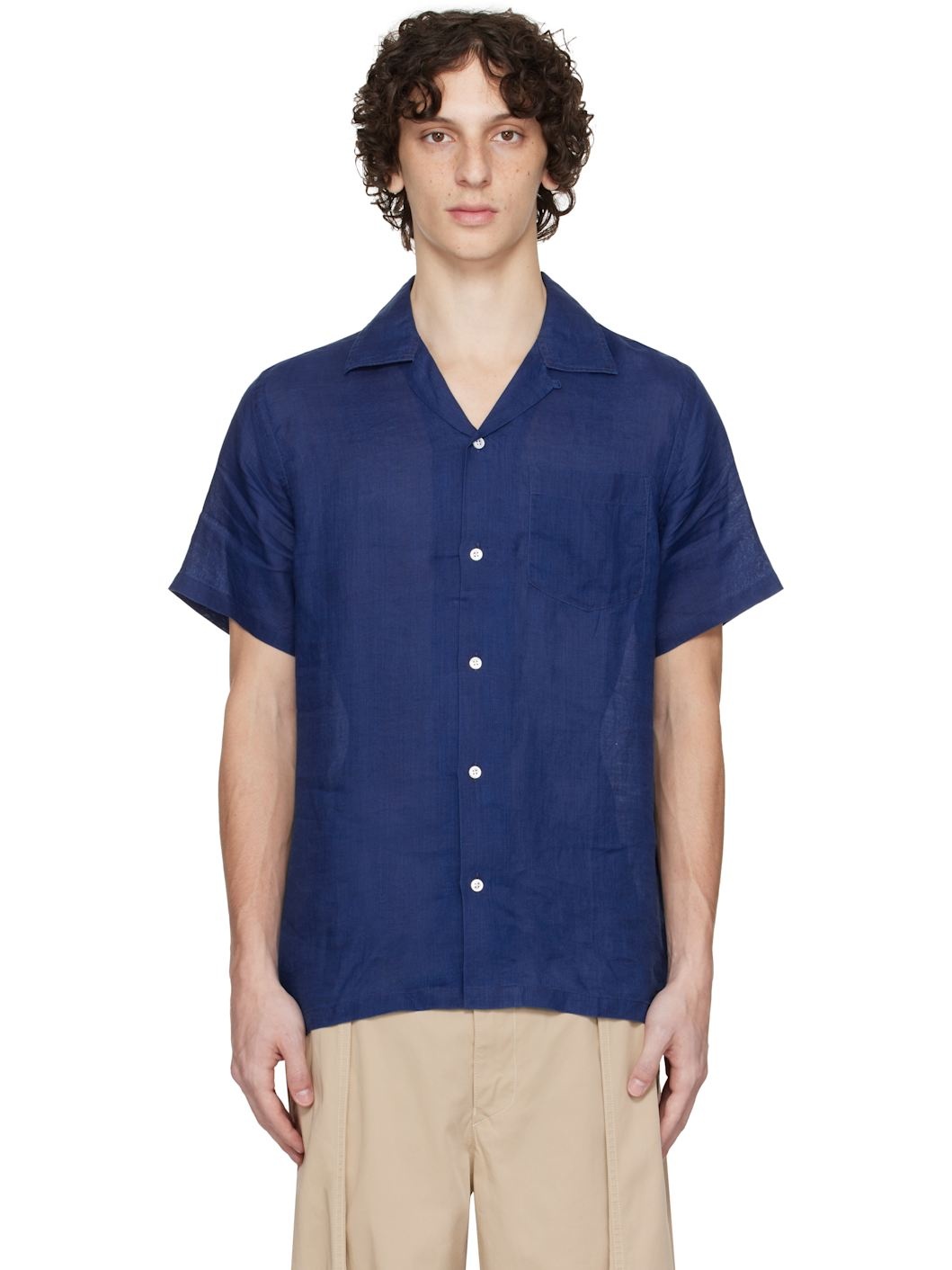 Semi-sheer plain-woven ramie shirt. · Button tab at open spread collar · Button closure · Patch pocket at chest · Vented side seams · Mother-of-pearl hardware Supplier color: Indigo 100% ramie. Made in Portugal 251488M192005