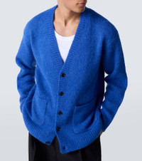This cardigan from Dries Van Noten is made from a soft alpaca and wool-blend. The design is defined by front patch pockets and ribbed-knit detailing along the neckline, hem and cuffs. Product Details - Material: 60% alpaca wool, 25% wool, 15% polyamide - Care instructions: dry clean - Made in China - Designer color name: Blue - Item color: blue - Collar: V-neck - Closure: buttoned front - Hardware color: black - Pockets: patch pockets - Item number: P01086517 Size & Fit - True to size - Dropped shoulders - Designed for a loose fit - Slightly stretchy fabric - Falls to the hip - Height of model is 188cm-74" and wears a size L