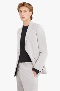 A union of traditional and contemporary codes, Dries Van Noten's grey striped Beeman jacket is made from cotton seersucker to a single-breasted profile with classic notch lapels and front flap pockets. Fabrication: 100% Cotton Size and Fit Nat: Model is 189cm/6’02” and is wearing a size 48 Model Measurements: Bust: 96.5cm, Waist: 78cm, Hips 89cm Fits true to size Measurements 46: Bust 88cm, Waist 88cm, Hip 88cm, Length 80cm 48: Bust 92cm, Waist 92cm, Hip 92cm, Length 80cm 50: Bust 96cm, Waist 96cm, Hip 96cm, Length 80cm 52: Bust 100cm, Waist 100cm, Hip 100cm, Length 80cm