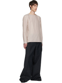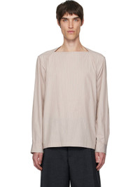 Cotton poplin shirt. · Stripes throughout · Boatneck · Zip closure at side seam · Adjustable buttoned barrel cuffs Supplie color: Beige 100% cotton. Made in Bulgaria 252358M192016