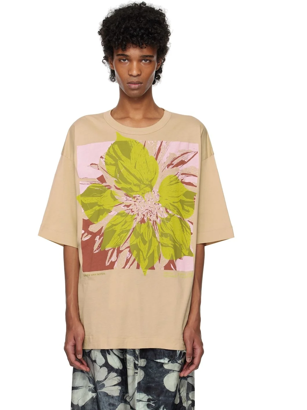 Cotton jersey T-shirt. · Rib-knit crewneck · Logo graphic printed at front · Dropped shoulders Supplier color: Cream 100% cotton. Made in Portugal 251358M213070