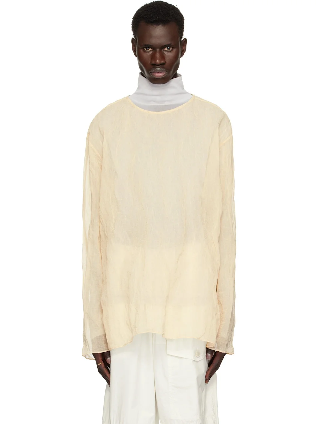 Sheer cotton- and silk-blend chiffon top. · Crinkled metallic threads throughout · Crewneck Supplier color: Natural 59% cotton, 31% metal fibre, 10% silk. Made in Tunisia 251358M213098