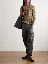 Slim-Fit Snake-Print Stretch-Mesh T-Shirt