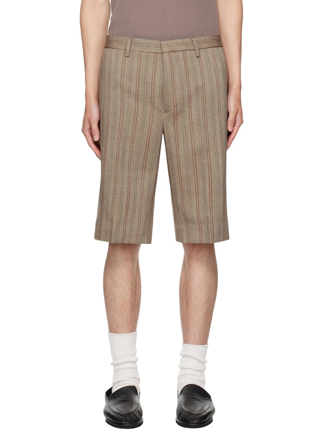 Wool dobby cloth shorts. · Striped throughout · Belt loops · Four-pocket styling · Zip fly · Creased legs Supplier color: Rust 100% wool. Made in Morocco 252358M193017