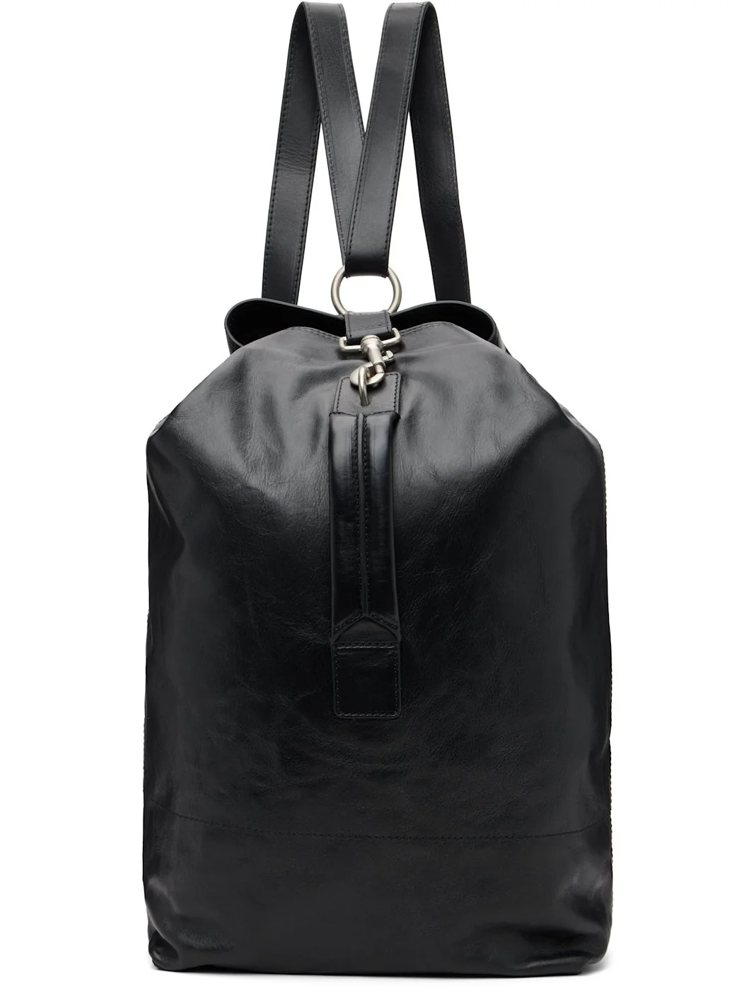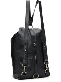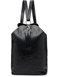 Crinkled grained leather backpack. · Carry handle and D-ring at face · Detachable and adjustable shoulder straps · Embossed logo and zip pocket at back face · O-rings and D-rings at back face · Lobster-clasp fastening at top · Two-way zip closure · Zip pocket at interior · Padded laptop compartment · Poplin lining · H18.5" x W17" x D6.5" Supplier color: Black Leather. Made in Italy 252358M166002