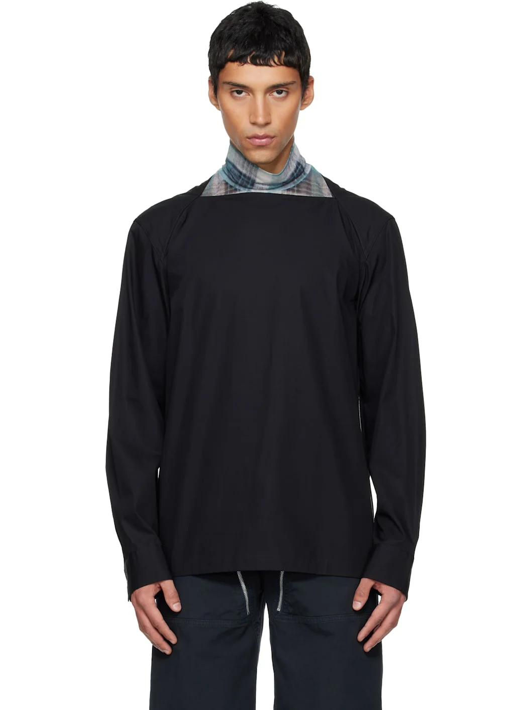 Black Boat Neck Cotton Shirt
