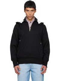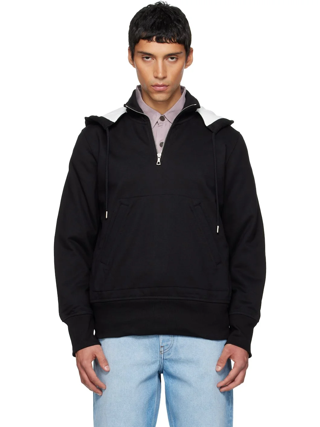 French terry hoodie. · Drawstring at hood · Rib-knit stand collar, hem, and cuffs · Half-zip closure · Kangaroo pocket at front Supplier color: Black 100% cotton. Made in Turkey 252358M202004