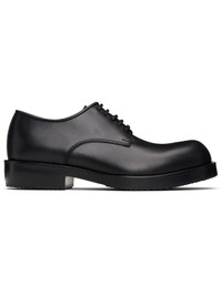 Buffed leather derbys. · Lace-up closure · Topstitching at welt · Stacked leather heel with rubber injection · Leather sole with rubber injection Supplier color: Black Upper: leather. Sole: leather, rubber. Made in Italy 252358M225003