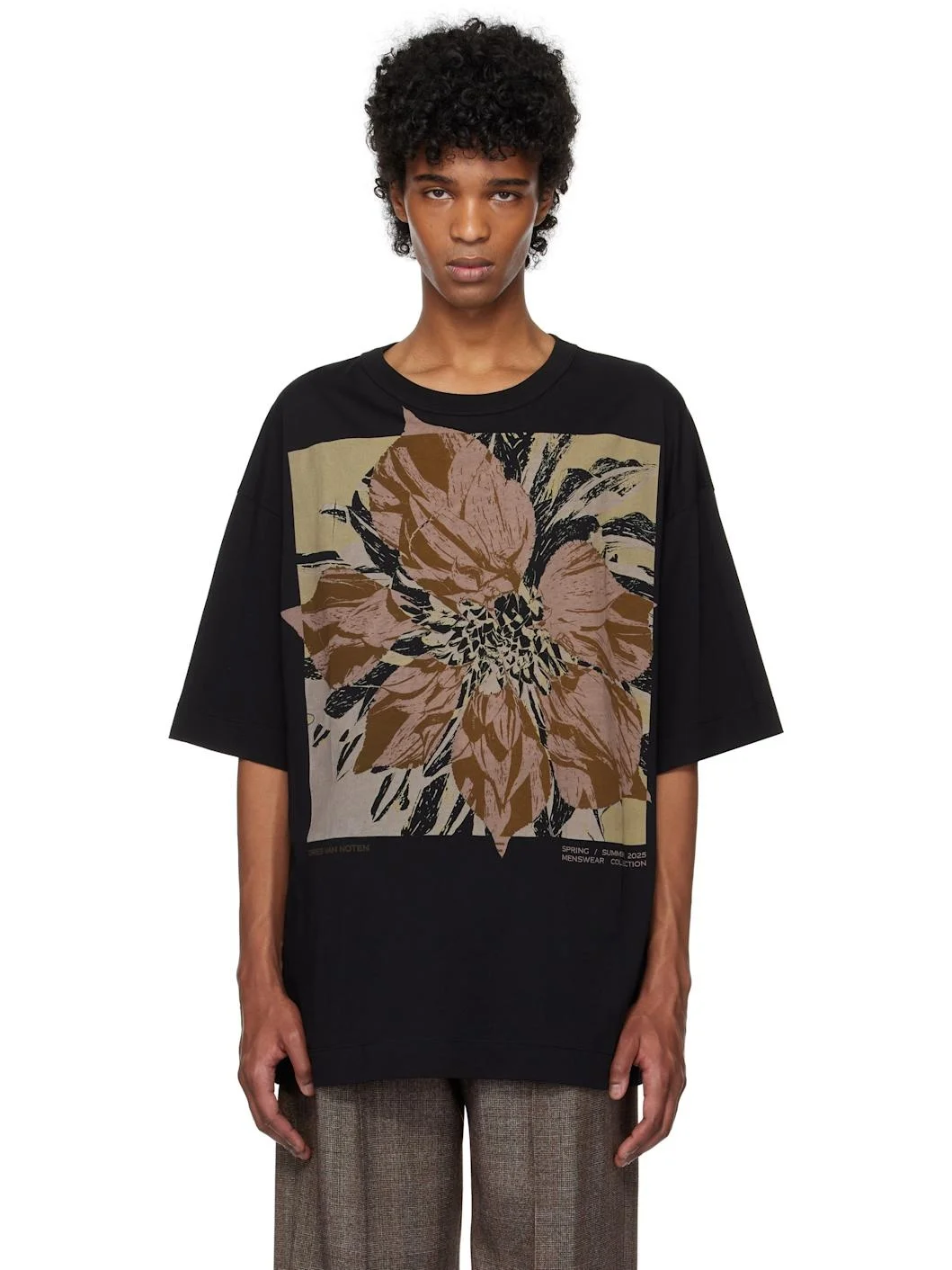 Cotton jersey T-shirt. · Rib-knit crewneck · Logo graphic printed at front · Dropped shoulders Supplier color: Black 100% cotton. Made in Portugal 251358M213069