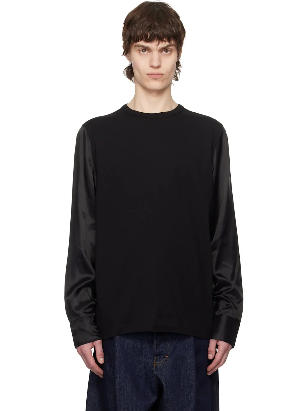 Cotton-blend jersey and twill T-shirt. - Paneled construction - Rib-knit crewneck - Pleats at adjustable single-button barrel cuffs Supplier color: Black