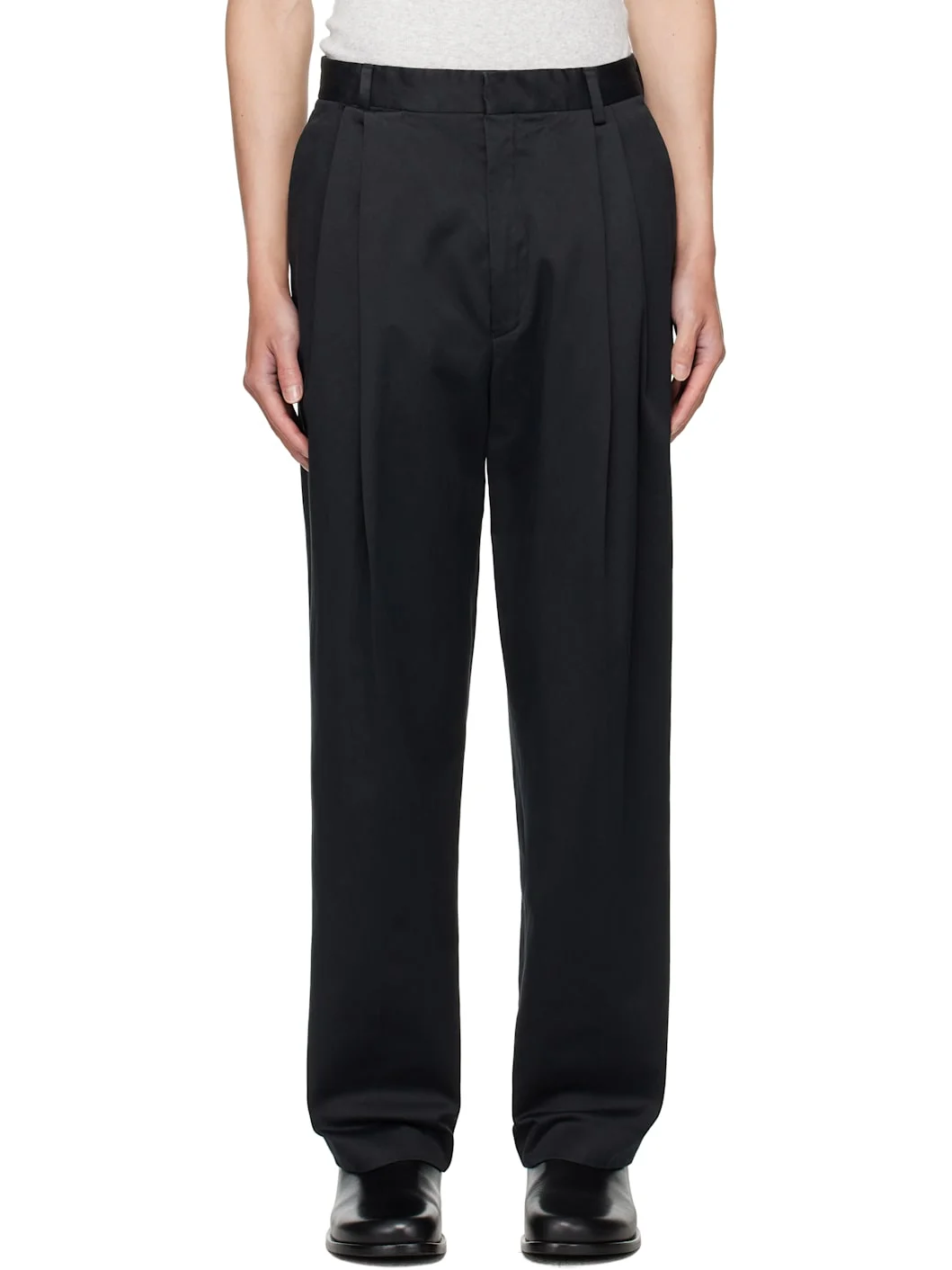 Cotton twill trousers. · Belt loops · Five-pocket styling · Zip fly · Pleats at waist · Creased legs Supplier color: Black 100% cotton. Made in Morocco 252358M191003
