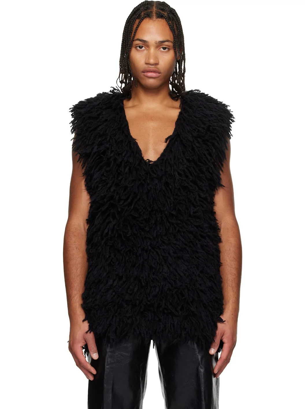 Shag-knit wool- and alpaca-blend sweater. V-neck. Supplier color: Black 68% wool, 28% alpaca, 4% polyamide. Made in Belgium 252358M206005
