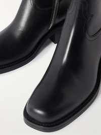Dries Van Noten's collections are all about proportion and balance. Ideal to wear with the label's wide-cut trousers, these leather boots have been made in Italy with Western-style vamps and stacked heels. Side zips allow for easy on and off. Size & Fit - Fits true to size. Take your normal size - Only available in full sizes, go up to the nearest whole size if you take a half size Details & Care - Black leather (Calf) - Zip fastening