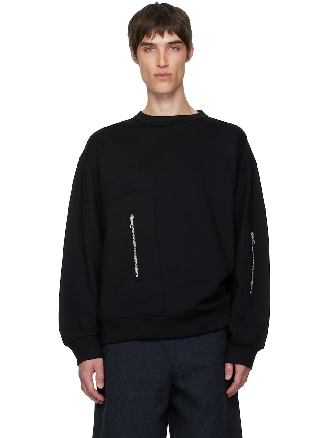 French terry sweatshirt. · Rib-knit crewneck, hem, and cuffs · Zip pocket at front and sleeve · Dropped shoulders · Integrated cinch strap at interior Supplier color: Black 100% cotton. Made in Turkey 252358M204007