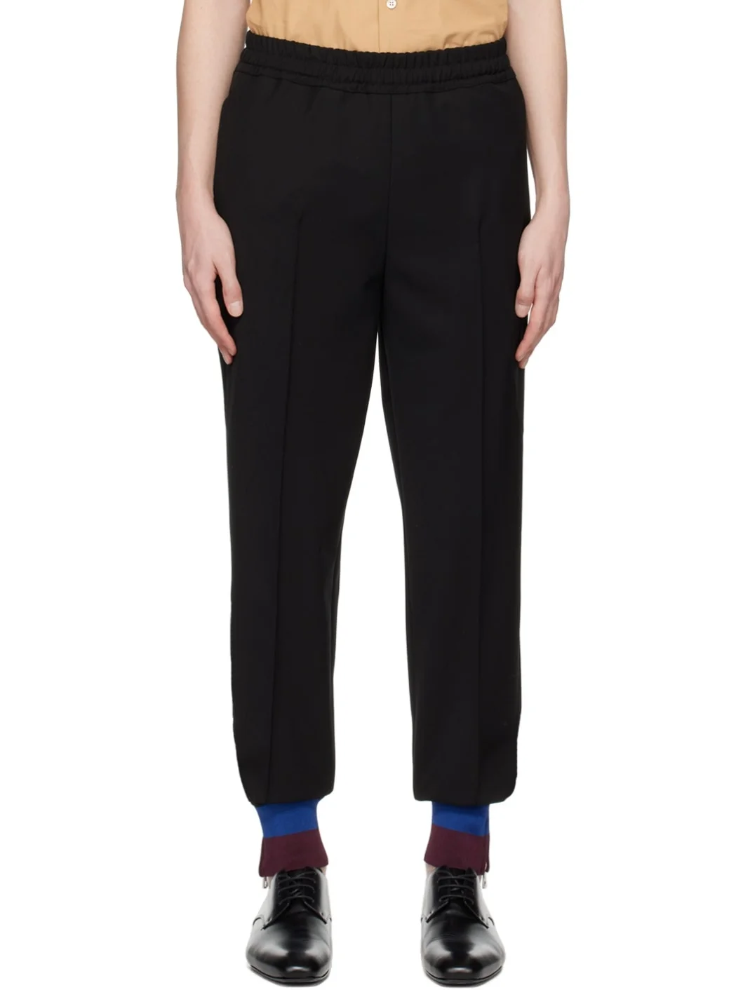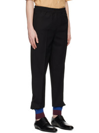 Polyester- and wool-blend gabardine trousers. · Concealed drawstring at elasticized waistband · Four-pocket styling · Pinched seams at legs · Zip vents at striped rib knit cuffs Supplier color: Black