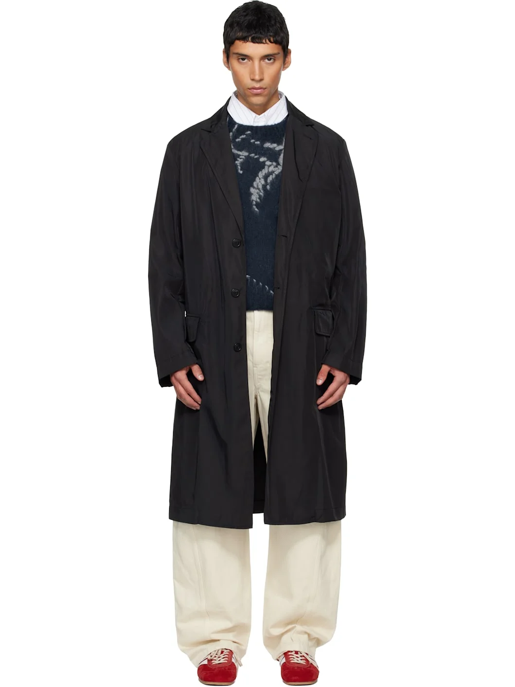 Taffeta coat. · Notched lapel · Button closure · Flap pockets at front · Central vent at back hem · Welt pocket at interior · Unlined Supplier color: Black 100% polyester. Made in Romania 252358M176031