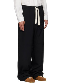 Wool canvas cargo pants. · Drawstring at elasticized waistband · Four-pocket styling · Zip-fly · Flap pocket at front leg Supplier color: Black 100% wool. Made in Romania 251358M191015