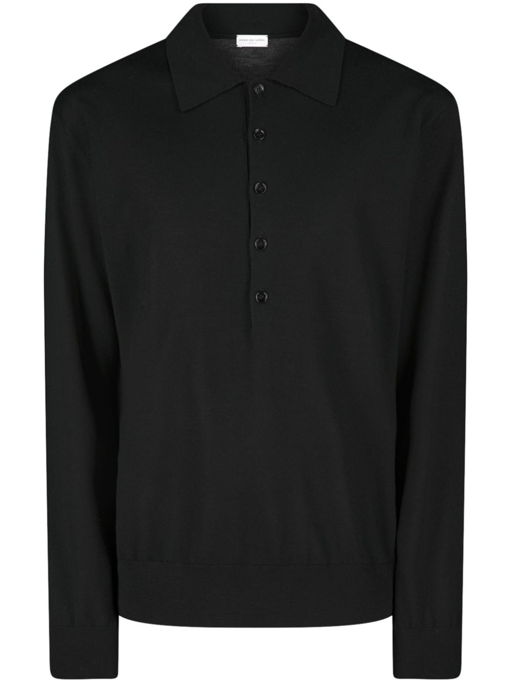 buttoned polo shirt Highlights - Black - Merino wool - Button fastening - Polo collar - Long sleeves - Straight hem Imported Composition Merino 100%