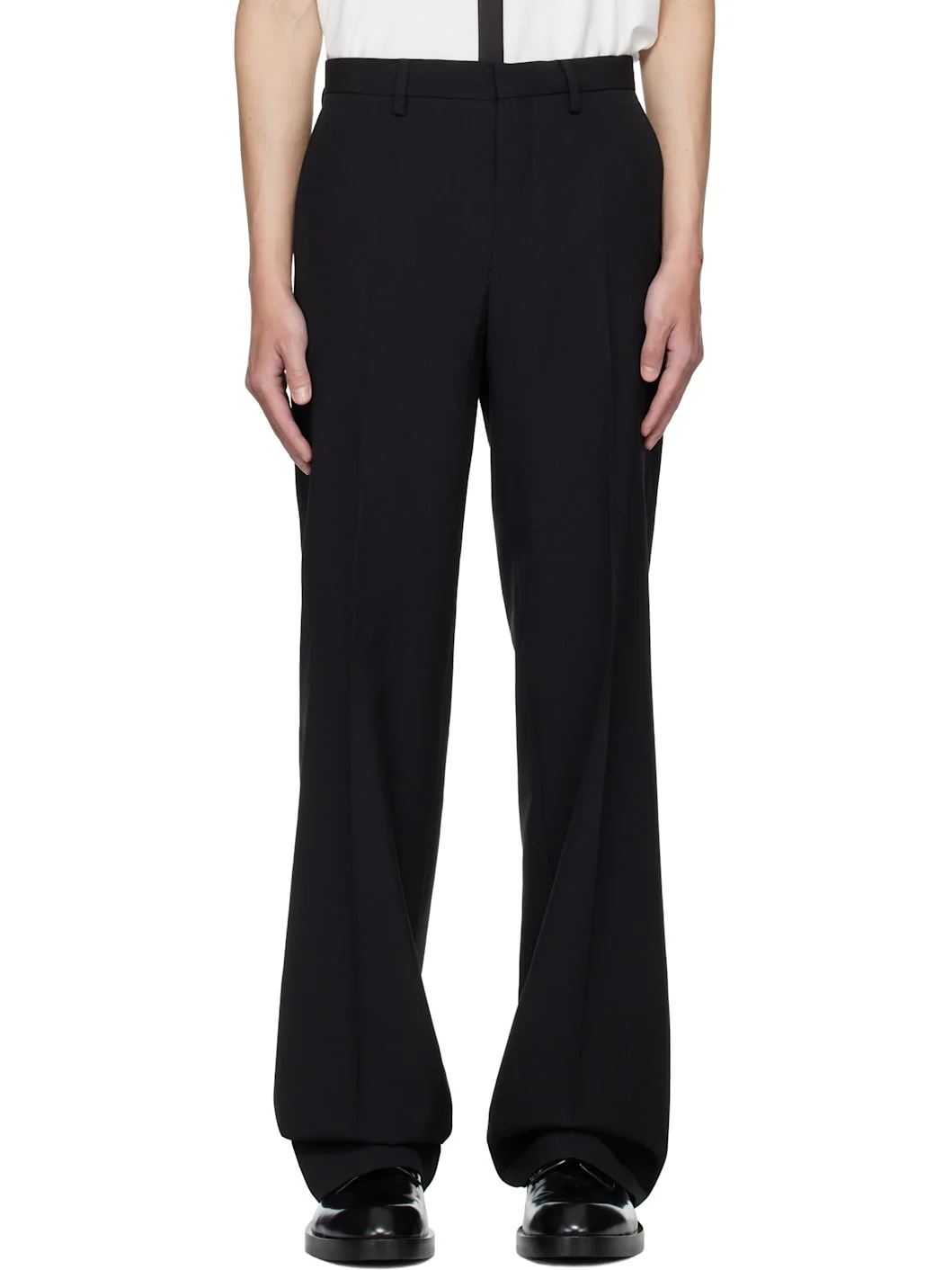 Wool canvas trousers. · Belt loops · Four-pocket styling · Zip fly · Creased legs Supplier color: Black 100% wool. Made in Morocco 252358M191010