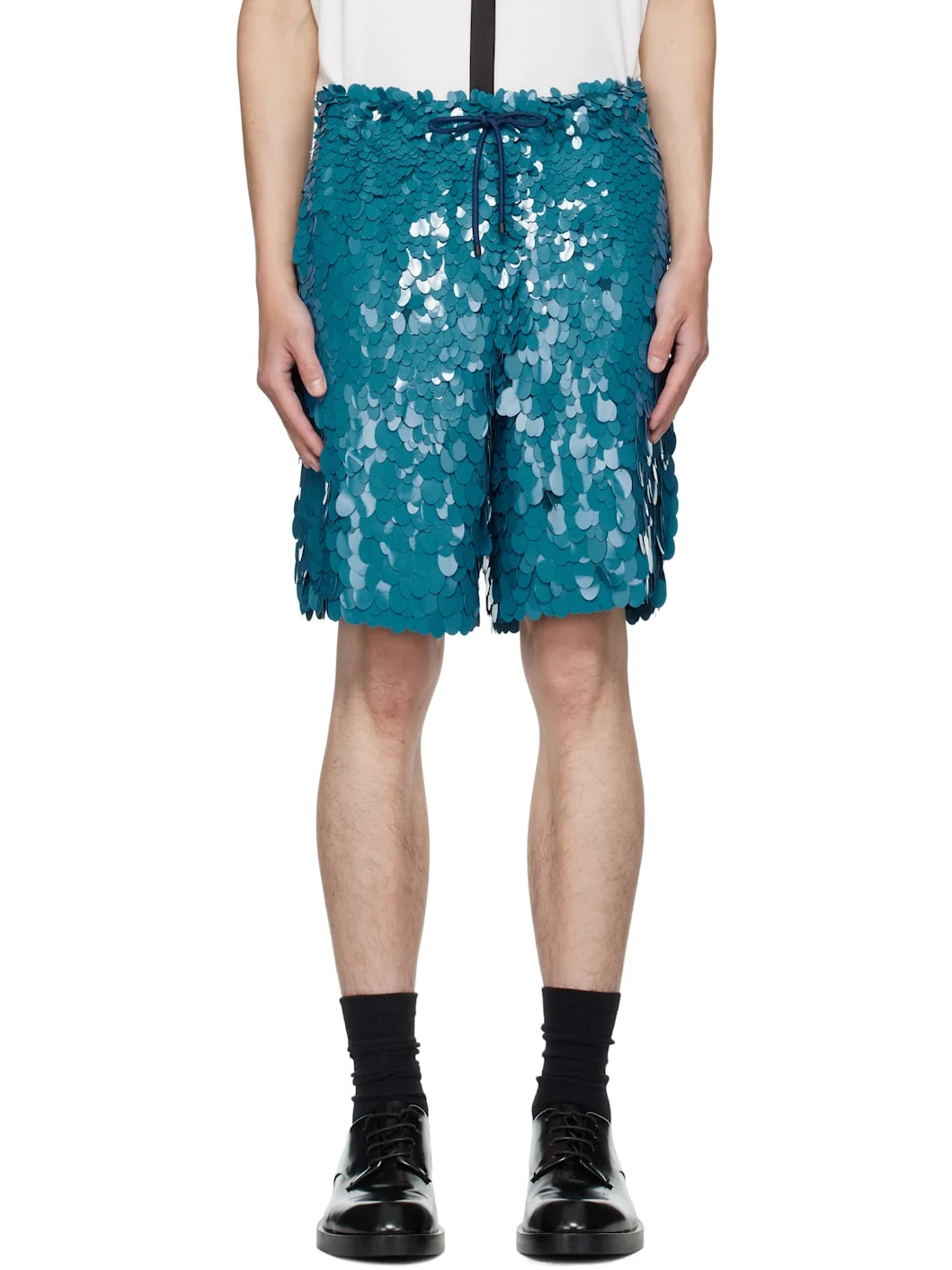 Sequinned viscose crepe shorts. Drawstring at elasticized waistband. Supplier color: Petrol 100% viscose. Made in India 252358M193018
